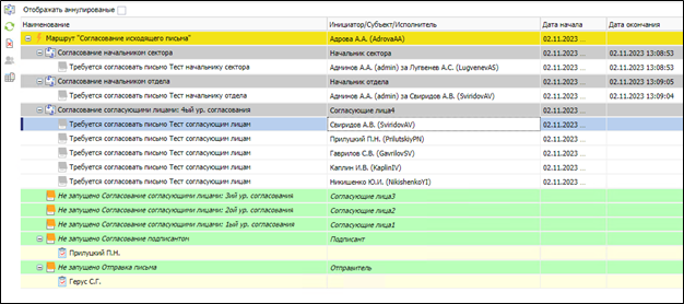 Задачи всегда направляются параллельно, но есть возможность настроить состояния маршрута таким образом, чтобы исполнители получали задачи последовательно. Для примера разберем маршрут «Согласование распоряжения».