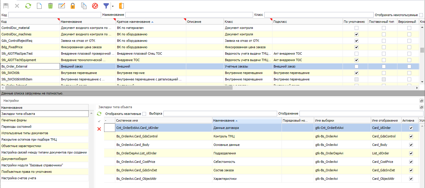 Настройка системы \ Сущности > Типы объектов > Типы объектовВыберите настройку