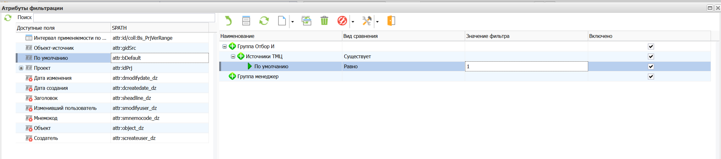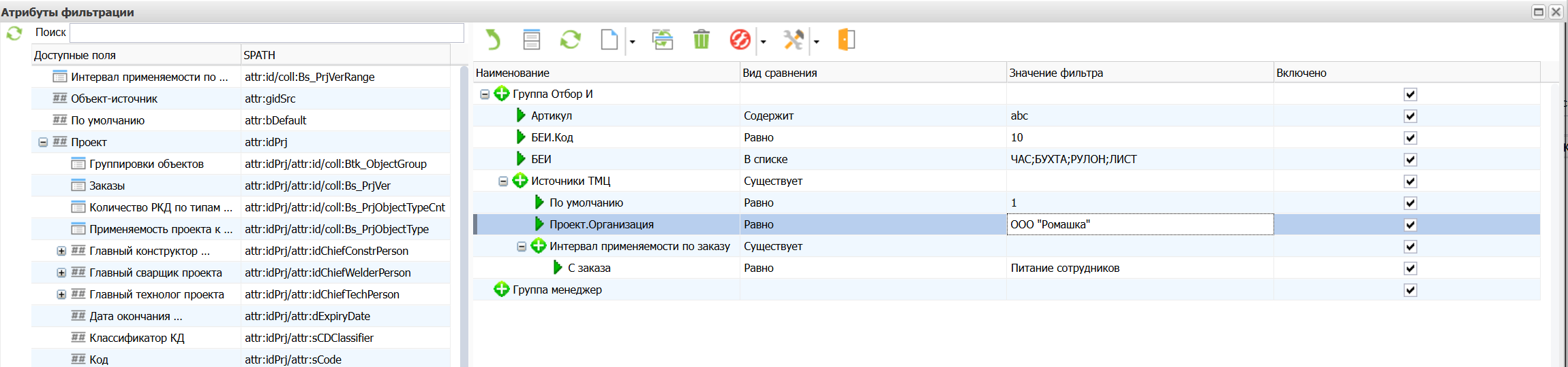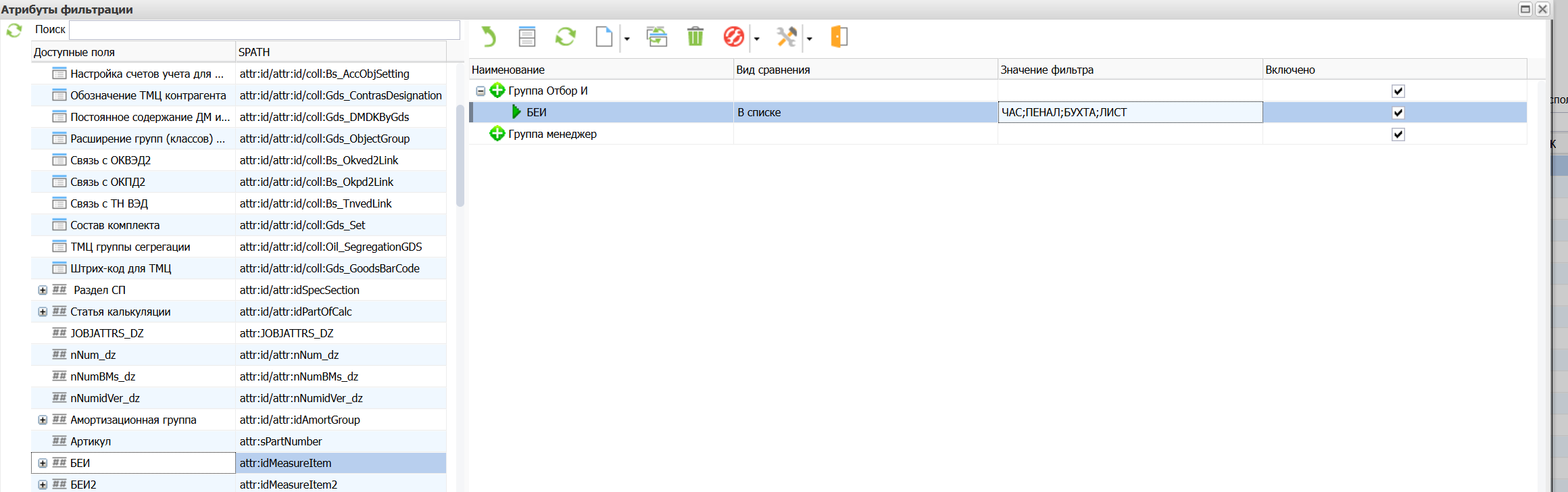 HL – атрибуты (далее IdAttrHL) считаются ссылочными атрибутами и в фильтрации не участвуют. Фильтрация осуществляется по их id-атрибутам (далее IdAttr).