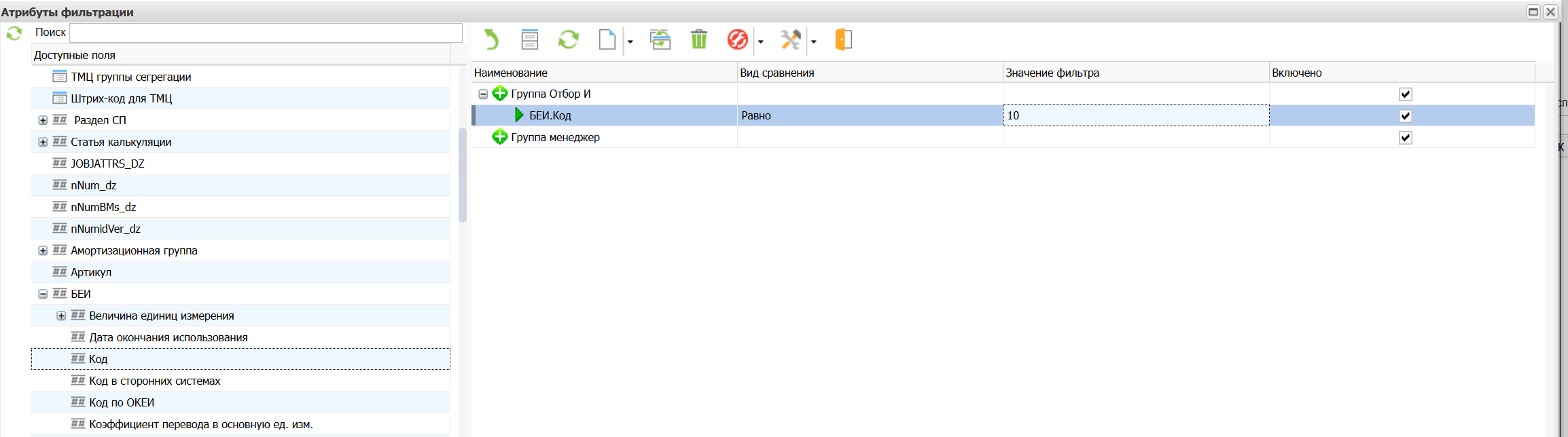 Активация фильтра в выборке#