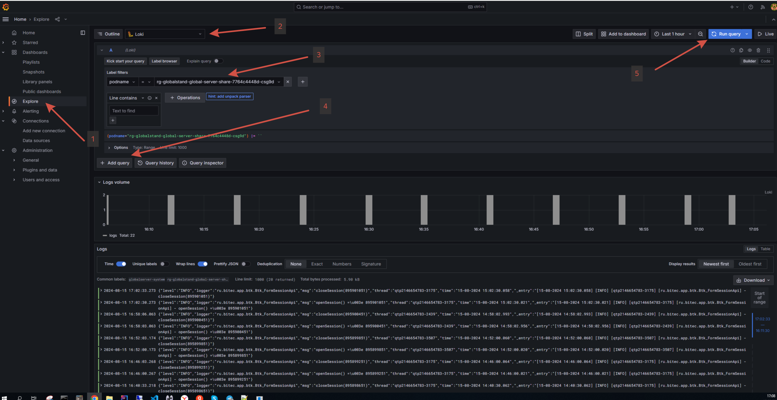 Для просмотра логов выполните следующие действия: