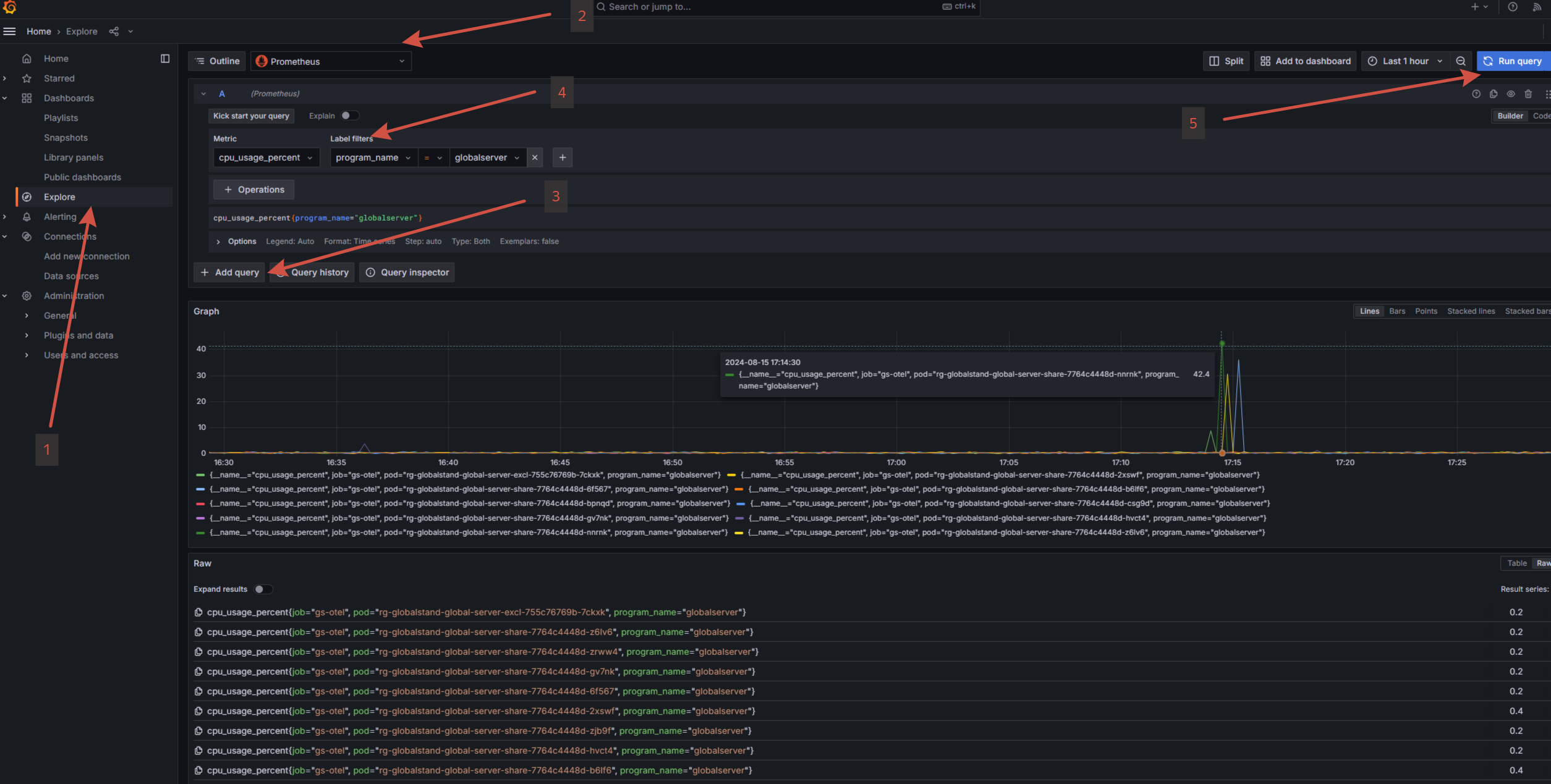 metric- имя конкретной метрикиlabel- дополнительные атрибуты метрики:program_name- имя сервиса, поставщика метрик. (globalserver, globalscheduller и тд. )podname- имя кластерного узлаи тд.