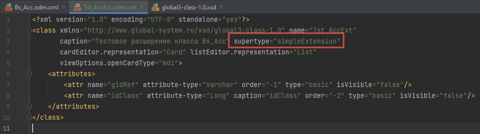 Класс-расширение создается полностью аналогично любому другому классу. При создании необходимо указать супертип simpleExtension.