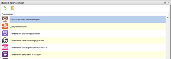 Если указаны правильные параметры входа и пользователю доступно несколько приложений, система откроет окно выбора приложений. Если доступно только одно приложение, система откроет его сразу без отображения окна выбора. Список приложений определяется настройками доступа и отображается в виде списка: